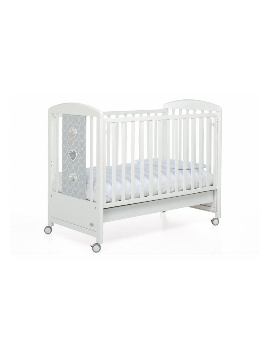 Differenti posizioni di base, sponde abbassabili, ruote gommate antigraffio con sistema frenante e cassetti estraibili in cui riporre
